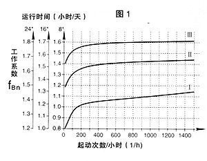 2. R,K,F系列齿轮减速机:根据每天的工作时间,每小时起动次数按(图1)确定合适的工作系数fB>工作系数fBn。